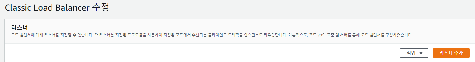 현재 로드밸런싱에서 기본적으로 열려있는 포트는 80이다. 그래서 이 문제는 해당 ELB -> 구성 -> 로드밸런서 -> 리스너 추가를 통해 다른 API들을 열어주었다.