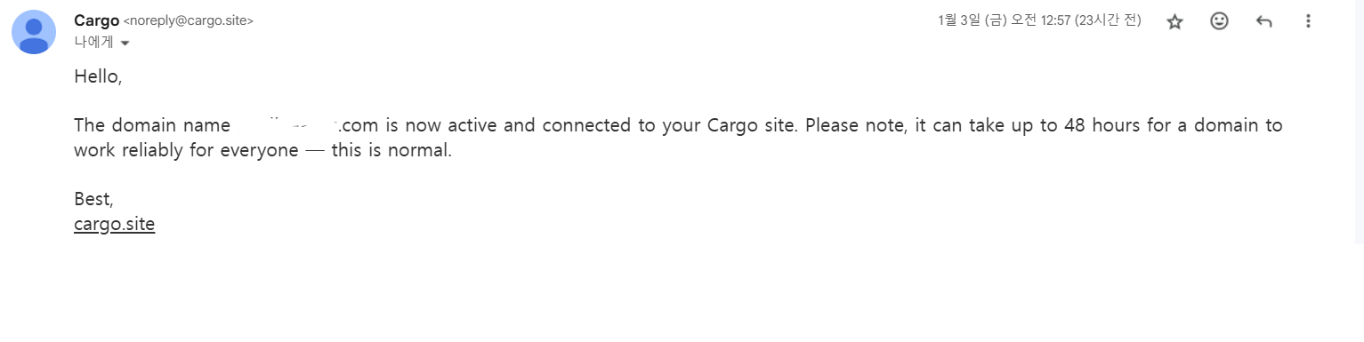 - 이후, 본인 도메인으로 접속하면 Cargo에서 만든 웹사이트가 정상 표시된다.