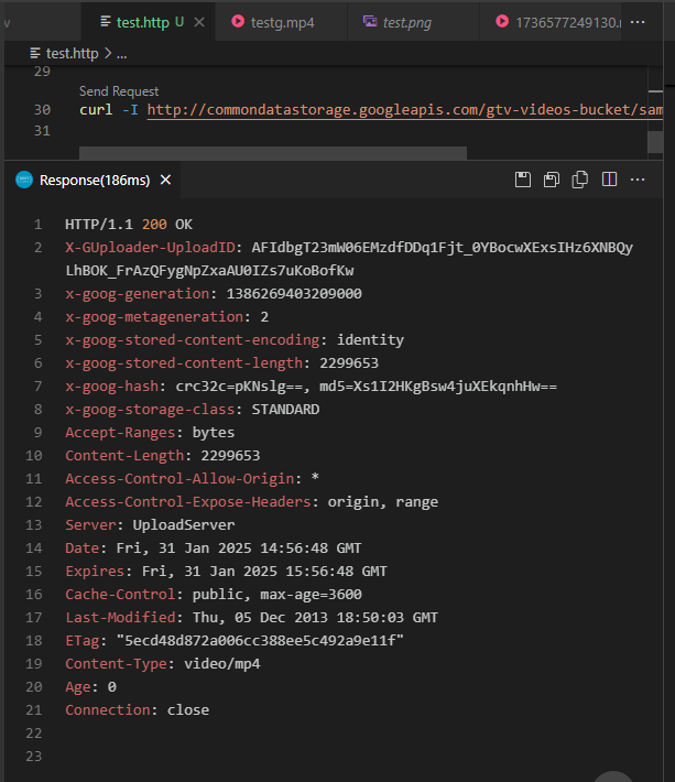 열어보니 뭔가 내가 개발한 api의 응답값보다 항목이 많다. x-goog 항목은 저 영상 url이 googleApi를 통해 가져오므로 관련된 항목같았다. 그러므로 prefix goog는 패스! 이렇게 비교해보니